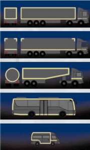 Of je wagen markeringstape moet dragen hangt af van zijn (ongeladen) gewicht. Volgens de Europese richtlijn ECE-48 moeten de volgende vrachtwagens en aanhangwagens van reflectietape zijn voorzien:
