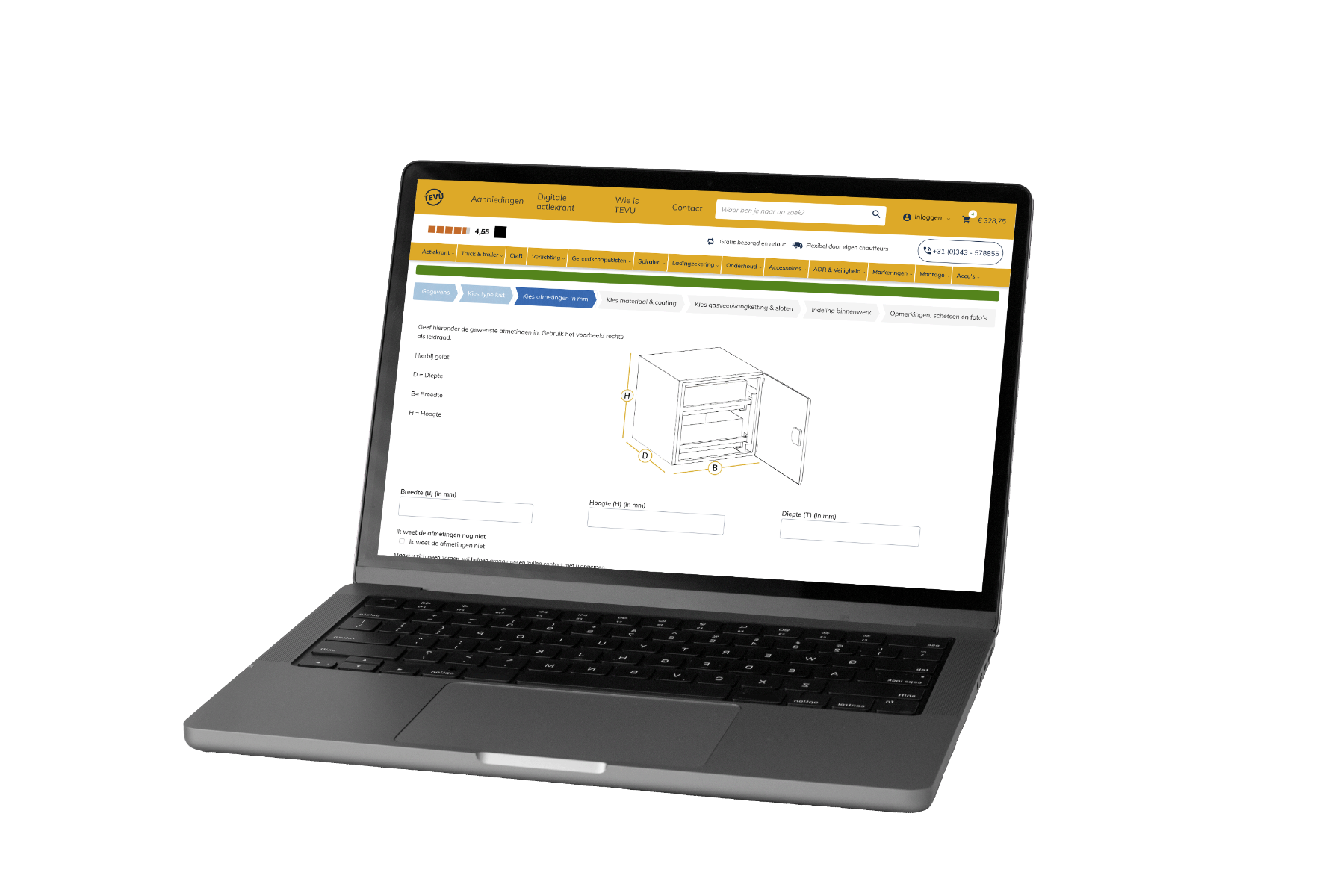 Bij TEVU ontwerp je in een paar klikken een gereedschapskist die perfect past bij jouw truck, trailer of bedrijfsvoering. Met ruim 35 jaar ervaring, échte gereedschapskist specialisten en verrassend scherpe maatwerkprijzen maken we elke kist volledig klant specifiek — van afmetingen tot materiaal, sluiting, lades en extra opties. Altijd gratis bezorgd met onze eigen chauffeurs, zonder lengte- of gewichtstoeslagen.