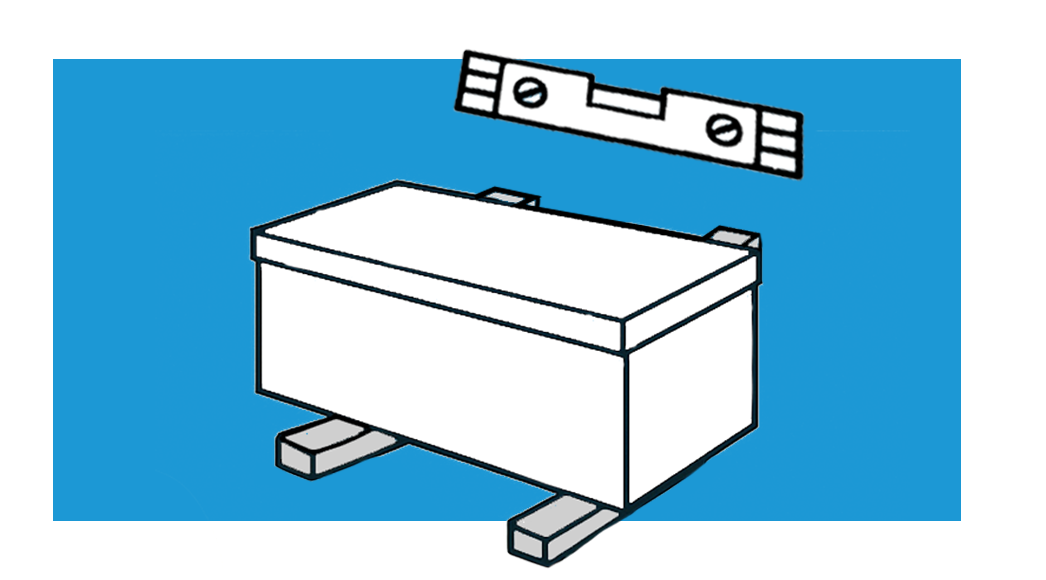 Plaats de kist waterpas op de steunen.