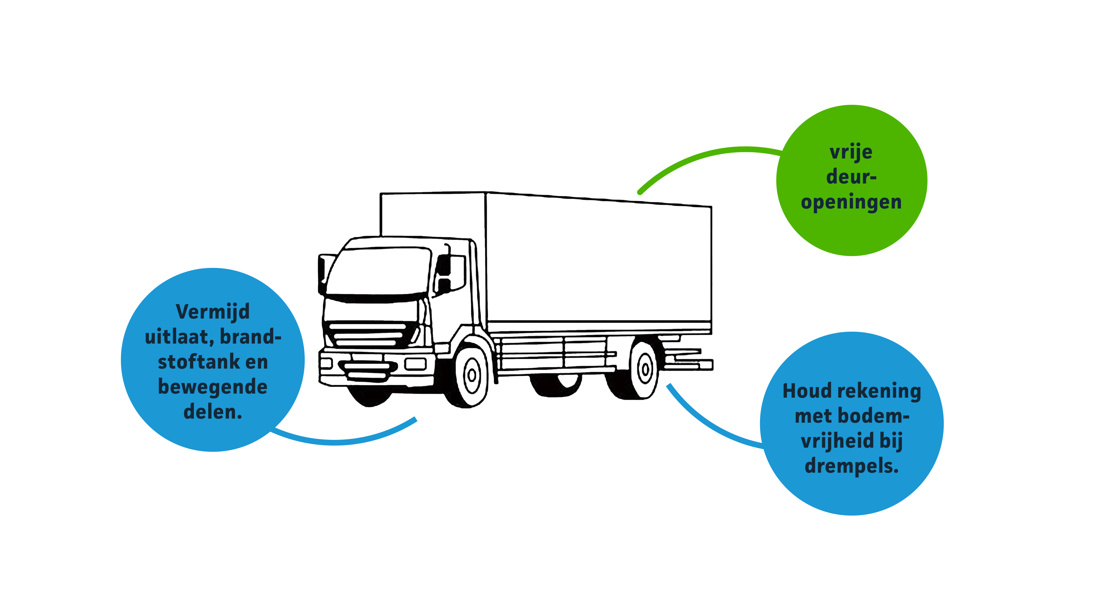 ✓ Hang de kist torsievrij op, zodat er geen spanning ontstaat bij chassisverdraaiing tijdens het rijden
