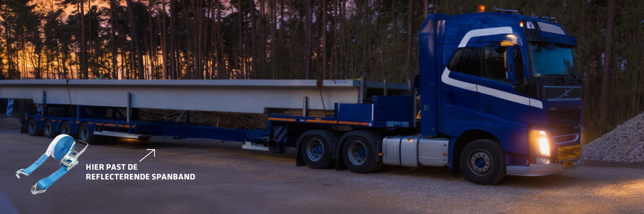 Nieuw in ons assortiment zijn spanbanden met reflecterend stiksel. Die kun je gewoon gebruiken om je lading vast te zetten, maar ook als markering van je diep- of schuiflader. Met deze reflecterende spanbanden maak je snel een doorgetrokken signaleringslijn op je voertuig. Zowel horizontaal als verticaal. Natuurlijk zijn de banden van vertrouwde kwaliteit en hebben ze alle benodigde Europese keurmerken. Het reflecterende stiksel is verkrijgbaar in wit, geel of rood. Maak ze hieronder in een paar stappen op maat.